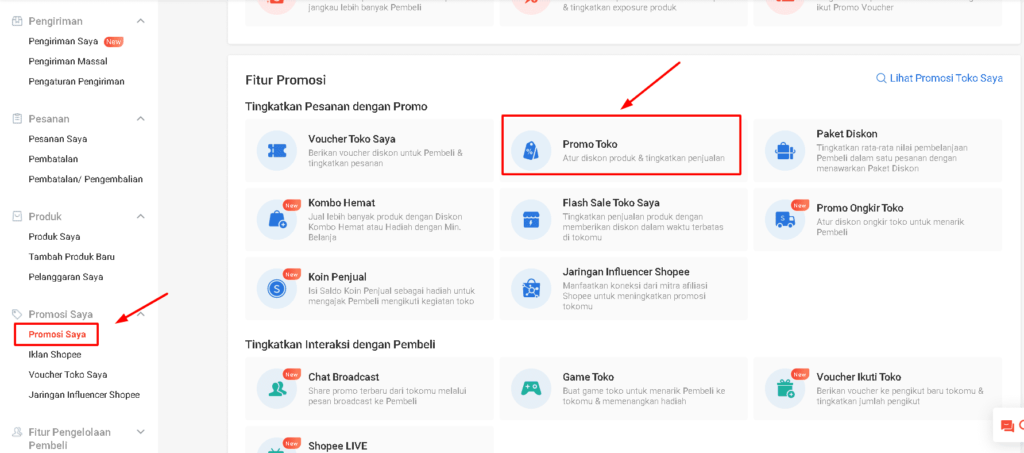 Cara mengakses atau menggunakan fitur promo toko ini sangat mudah. Anda tinggal pilih menu Promosi Saya, kemudian pilih Promo Toko