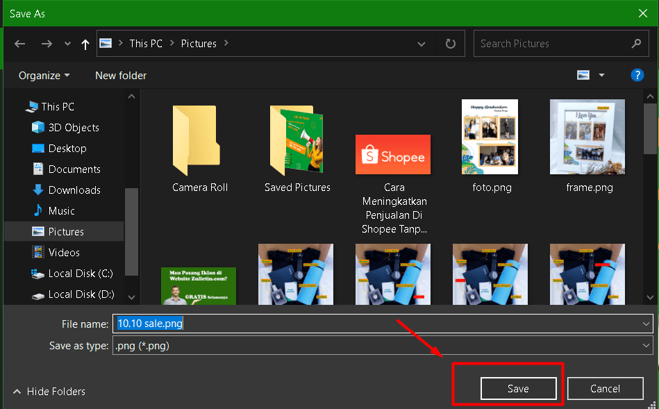 5. Jika sudah tinggal simpan gambar, dan ukurannya telah terkompres.