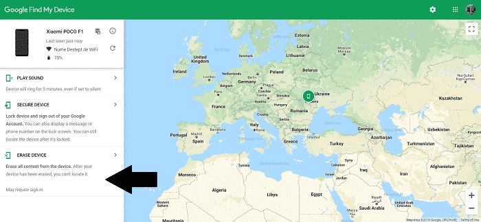 Untuk menghapus semuanya dari ponsel Anda, pilih opsi Hapus Perangkat. Semua data Anda sekarang akan dihapus dan orang lain tidak akan dapat melihat apa pun di perangkat Anda. Pastikan Anda membuat cadangan info Anda sebelumnya.