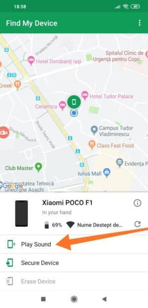Untuk membunyikan perangkat, ketuk opsi Putar Suara.