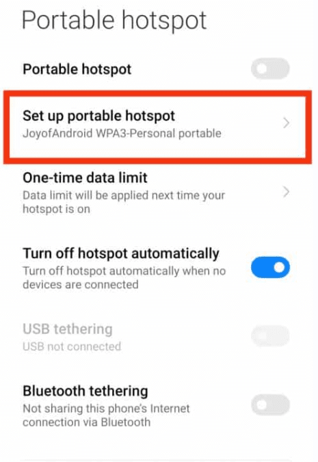 Langkah 3 : Buka Portable hotspot settings. Sekarang, pilih Set up portable hotspot.