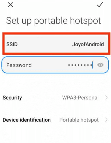 Menyetel nama hotspot yang dipersonalisasi memastikan bahwa Anda dengan cepat mengidentifikasi hotspot perangkat seluler dan dengan demikian membuat koneksi cepat. Ini menghilangkan waktu yang Anda habiskan untuk mencari nama perangkat Anda.